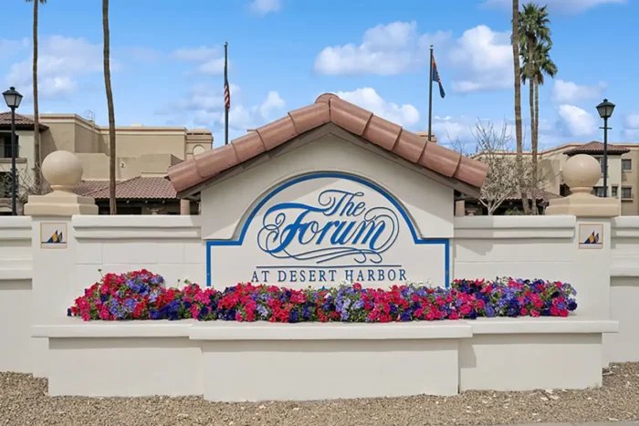 The Forum at Desert Harbor is a senior living community situated on 10.5 acres in Peoria, AZ, offering both independent and assisted living options. The community encourages residents to live life at their own pace, surrounded by palm trees and tranquil walking paths. Renovations have been completed, providing stylish new interiors and upgraded amenities.