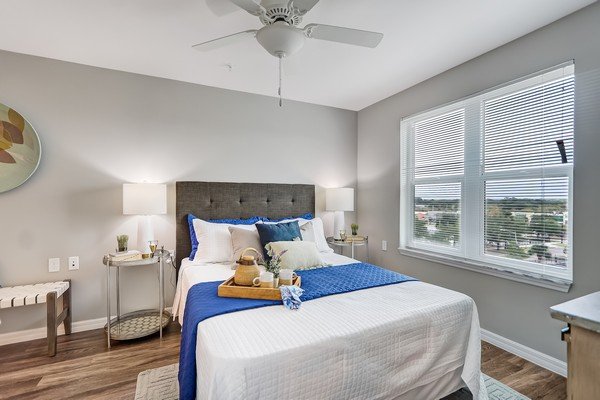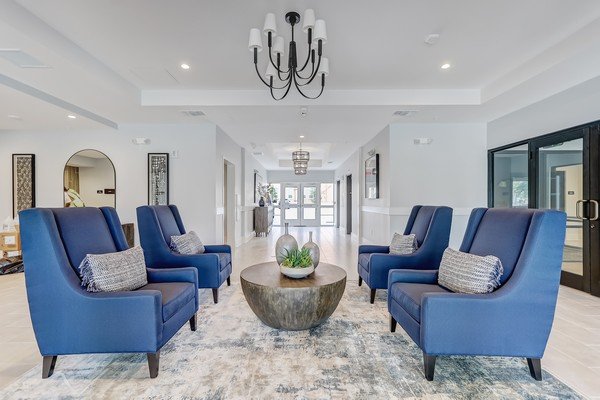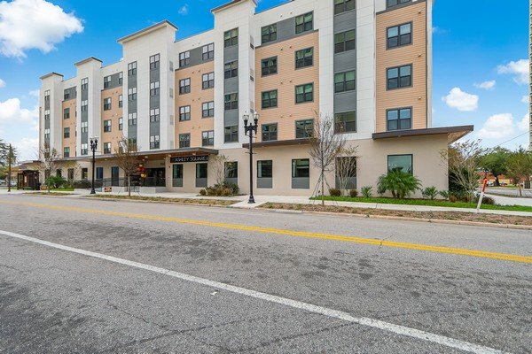 Ashley Square is a senior living community designed for adults 62 and over, situated in Jacksonville, Florida. This six-story building features a design with two floors dedicated to parking, and the ground level hosts an amenities area for residents. The remaining four floors house 120 apartment units, consisting of 96 one-bedroom and 24 two-bedroom layouts.