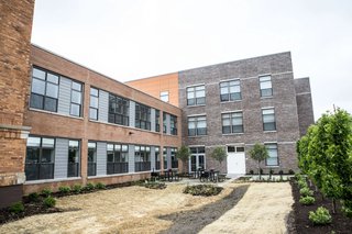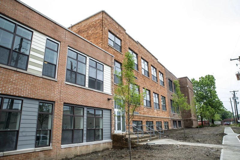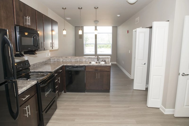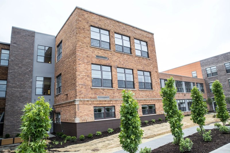 Eagledale Senior Apartments is a welcoming 65-apartment home community located in the historic Venerable Flackville neighborhood of Indianapolis, Indiana. The unique development preserves the facade and character of the original Flackville School No. 100 while seamlessly integrating new construction. Eagledale Senior offers studio, one- and two-bedroom layouts that feature in-home washer & dryer, modern black appliances, and spacious closets.
