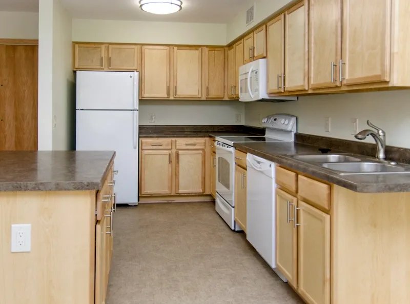 Apartments at Fort Des Moines Senior Housing include both one-bedroom (640 sq ft) a...