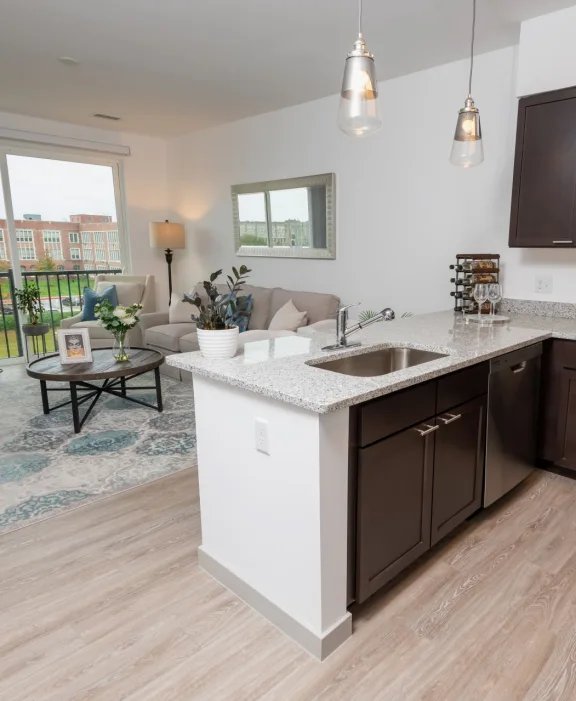 Zen Apartments is a welcoming community in Northeast Baltimore for residents 55 and better. The building features nature-inspired décor, modern features, and active amenities designed to promote balance. Residents can choose from a variety of one-bedroom and two-bedroom floor plans, each equipped with GE stainless steel appliances, in-unit washing and drying machines, luxury wood-style flooring, and upscale interior finishes.