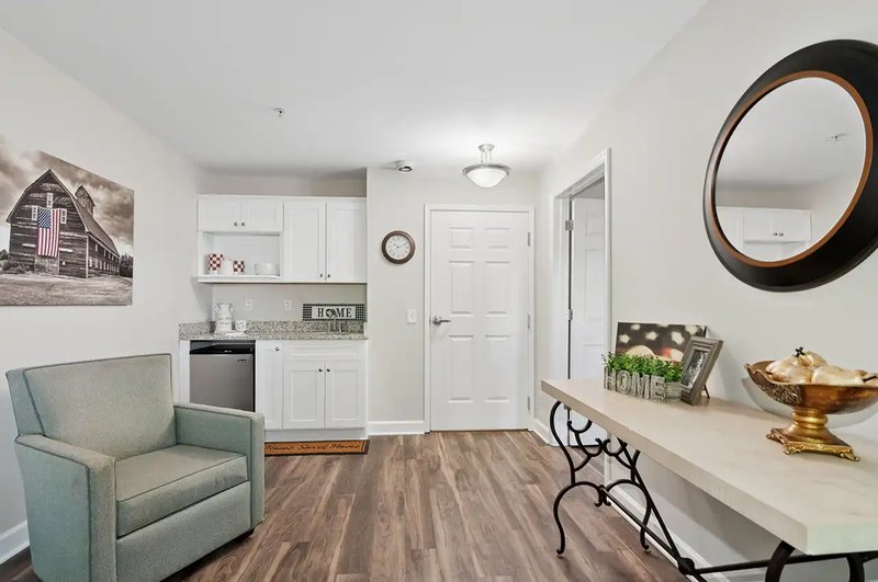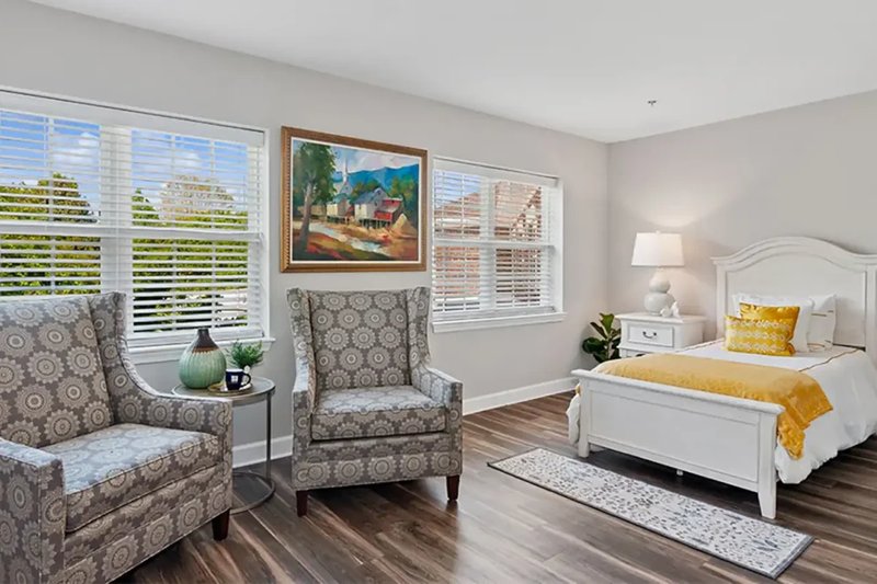 The Haven & The Laurels in the Village at Carolina Place is a senior living community located in Pineville, NC, designed to provide a stress-free and joyful environment. Residents are encouraged to live at their own pace while their needs are taken care of. The community is nestled in a private neighborhood with colorful crepe myrtle trees and gardens, offering a welcoming atmosphere where residents can relax and socialize.