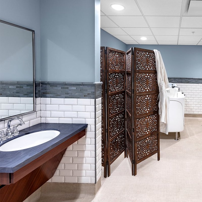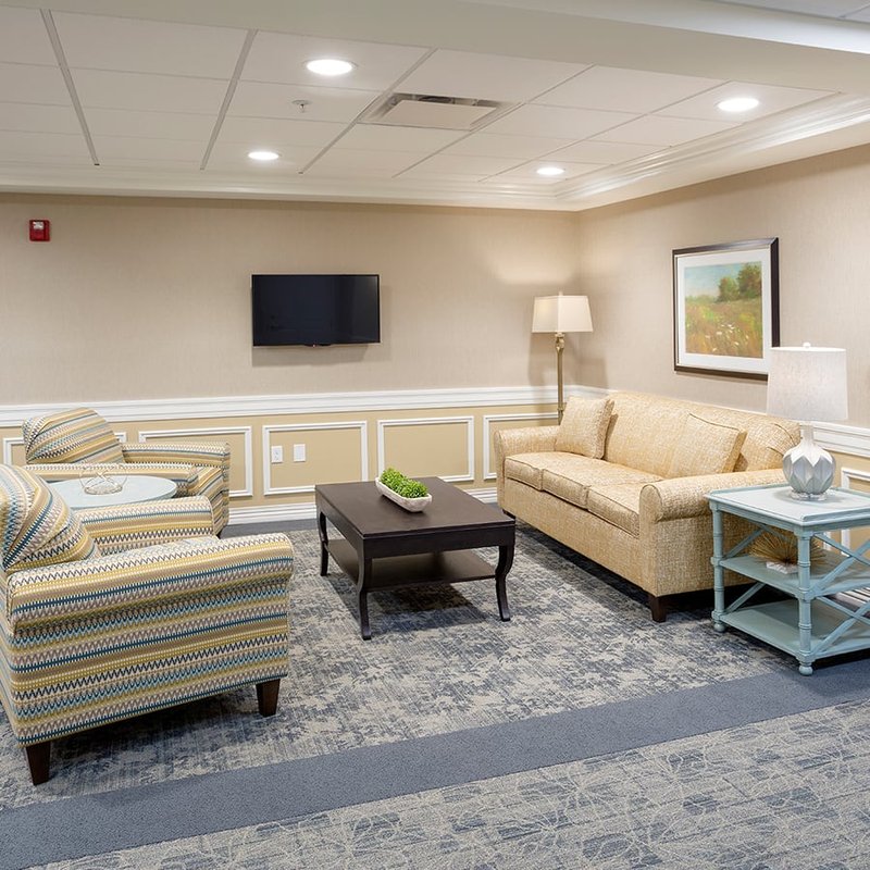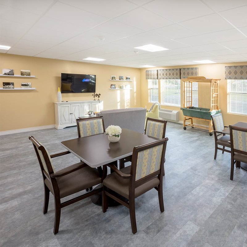 "The facility is very nice and spacious. We like most everything about it, but the rooms in the memory care area are rather small, and don’t really have a homey feel to them. They’re just a square room with an entry hallway where the bathroom is. There wouldn't be any room for her loveseat, her little table and chairs, or mini-fridge after putting her single bed in the r... Read More