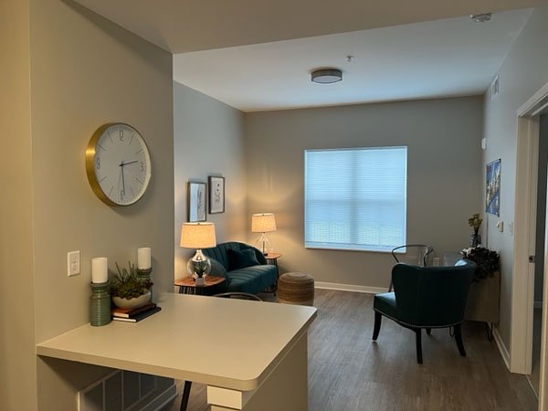 "Beautiful apartment and very well managed. My only complaint is the area of town. This is not a walkable (or safe) community. I do not have a car, and there is no grocery store nearby. NCR no longer provides vans to transport residents to grocery stores, so groceries must be ordered in at an additional expense."