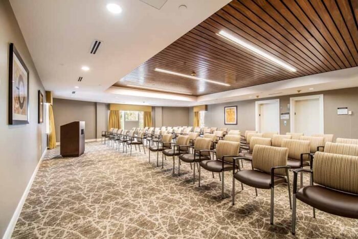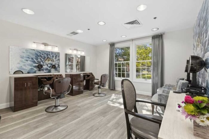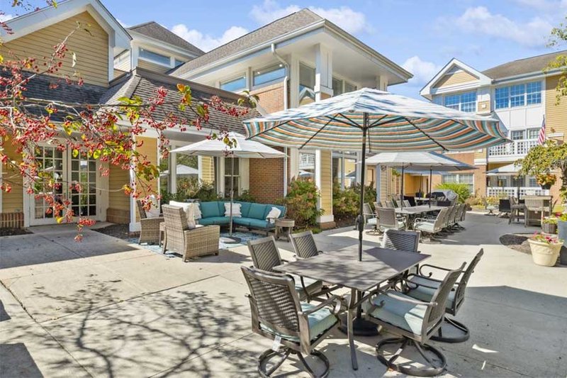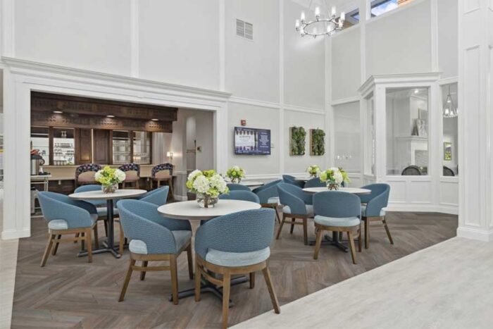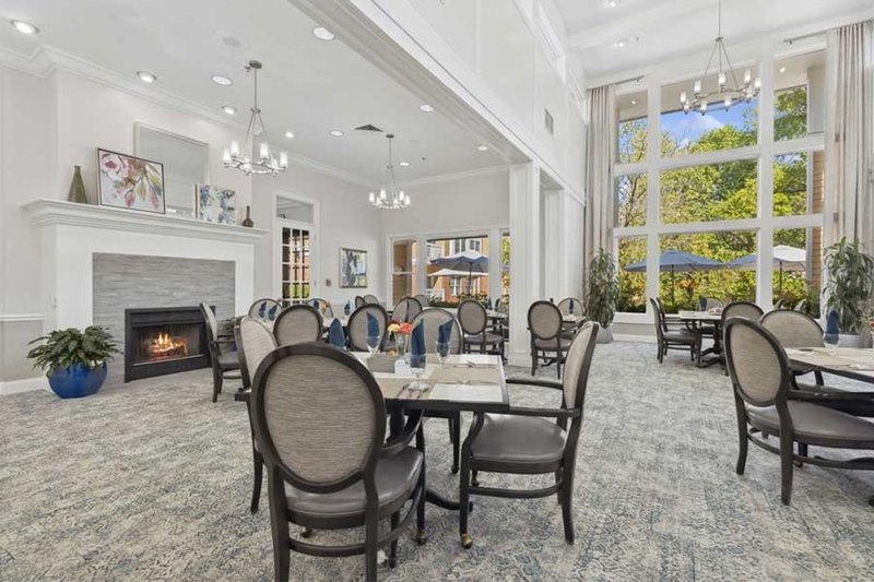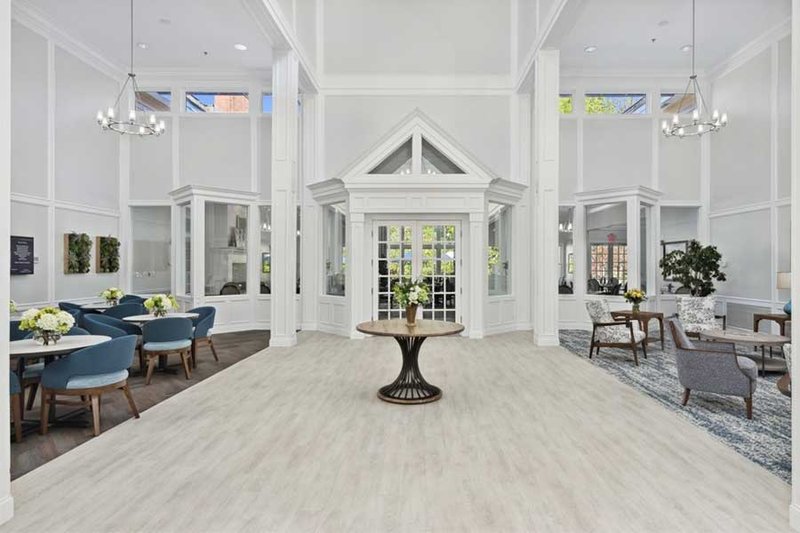 The Forum at Knightsbridge provides independent living, assisted living, and memory care options in Columbus, OH. This community emphasizes creating a welcoming environment where residents can thrive. The Forum at Knightsbridge is designed as a nature-lover’s paradise, incorporating floor-to-ceiling windows, a lush ravine, and sunlit patios. The community also showcases an artistic touch, with framed flower collages and painted mosaics adorning the walls.