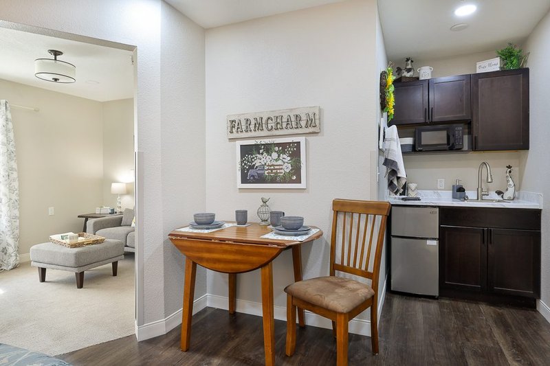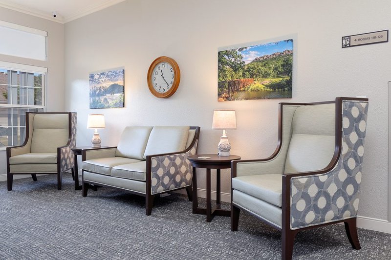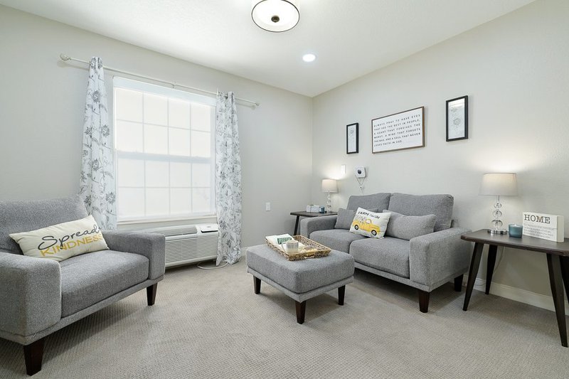 Residents at Homestead of Bethany can relax in the community's common areas or in their private apartments, furnish...