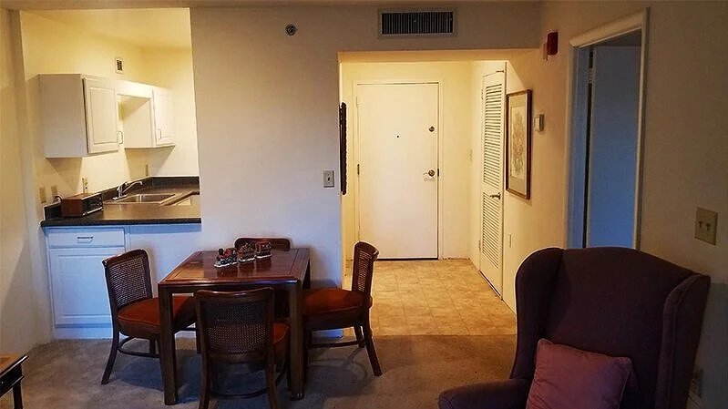 The apartments are large and spacious, with patio doors that look out onto your balcony. There you can sit and enjoy morning coffee or perhaps, the evening sunset. I use this time to read my Bible or meditate.