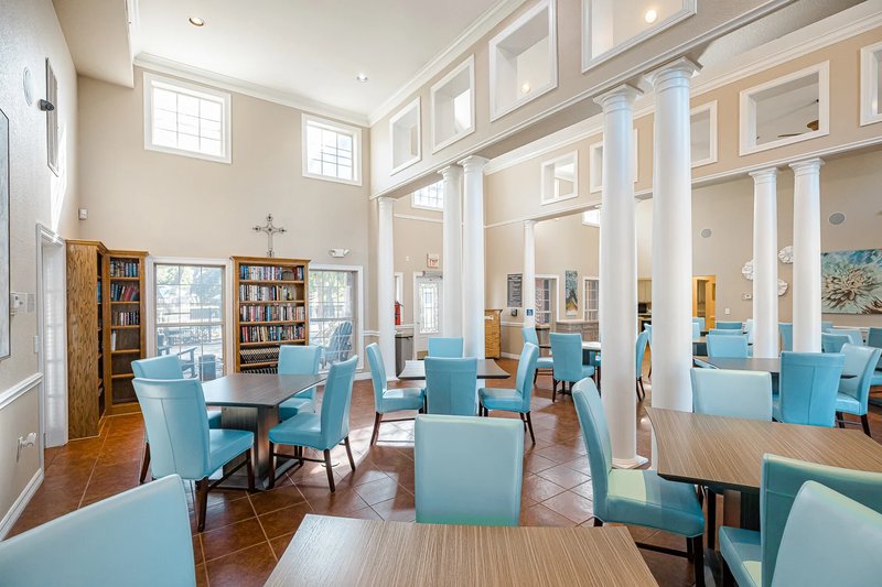 Residence at the Oaks Apartments is an adult living community for ages 55 and over, located in Dallas, Texas. It offers cozy one and two-bedroom apartments featuring spacious living areas with crown molding, beautiful kitchens with granite-style countertops, and generous storage space. Residents can also enjoy a private patio or balcony with additional storage and the convenience of ADA accessibility and in-unit intrusion alarm systems.