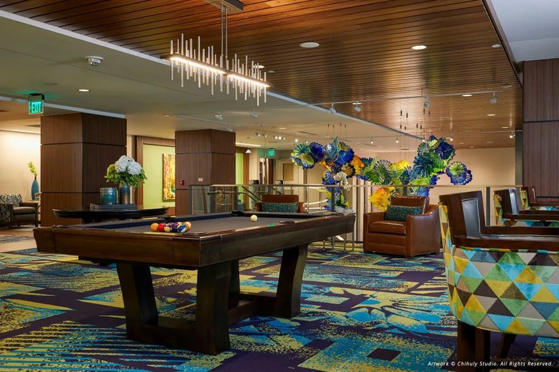 Murano Senior Living is ideally located in downtown Seattle, Washington, placing residents in the heart of the Puget Sound region. Its prime location offers easy access to the city's vibrant cultural scene, including the Symphony and Seahawks games. The community is perfectly positioned to enjoy breathtaking views of the mountains, city, and sound. With convenient access to downtown, residents can easily mix and mingle with city life or simply rise above it all without leaving the comfort of home. The SEA + SKY Lounge at Murano provides the ultimate place to prepare for any event, offering panoramic views that capture the essence of the Pacific Northwest.